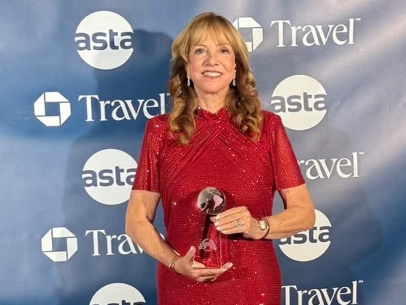Vicki Freed, Senior Vice President of Sales & Trade Relations with Royal Caribbean International, celebrates the cruise line’s outstanding recognition at the ASTA Globes Awards Dinner in Chicago.